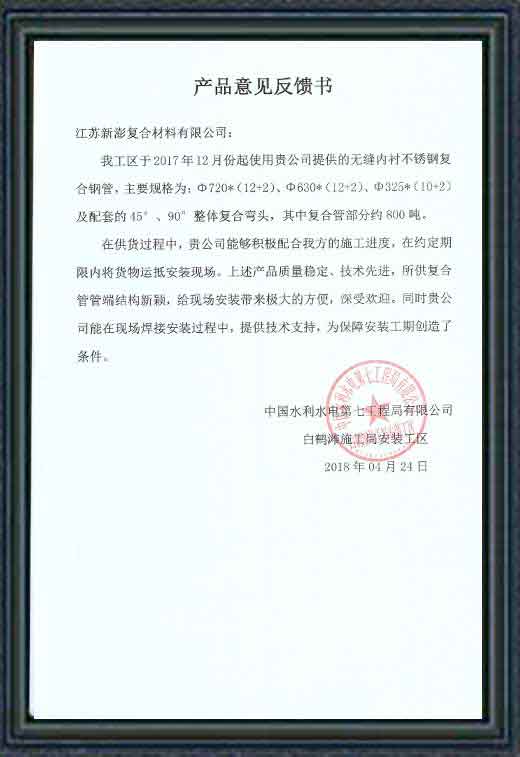 白鶴灘水電站位于四川省寧南縣和云南省巧家縣境內(nèi),總投資1800億元,我司供貨規(guī)格為:DN300、DN500、DN600、DN700,內(nèi)襯不銹鋼無(wú)縫管及管件??偣藏浟砍^(guò)2500噸(供貨時(shí)間:2017、2018、2019)。