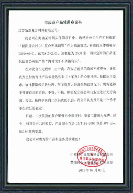蘇新澎復(fù)合材料有限公司是國(guó)內(nèi)大口徑內(nèi)襯不銹鋼復(fù)合管的領(lǐng)導(dǎo)者和開(kāi)創(chuàng)者。一直致力于大口徑內(nèi)襯不銹鋼復(fù)合管...